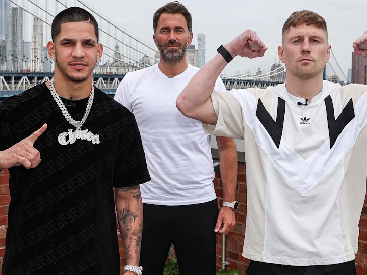 今天,美国超拳击中量级新秀埃德加-贝尔兰加(20-0,16KO)和爱尔兰拳手杰森-奎格(20-2,14KO)在纽约进行了赛前面对面。两人将于北京时间6月25日(周日)进行一场预定为12个泰拳回散打合的超中量级比赛,贝尔兰加卫冕WBO北美洲际拳王金腰带。贝尔兰加前16场职业比赛都是1回合秒杀对手,最近4场对手强了一些,都打满了全场,从这4场比赛看,贝尔兰加距离168磅顶级拳手还有差距。