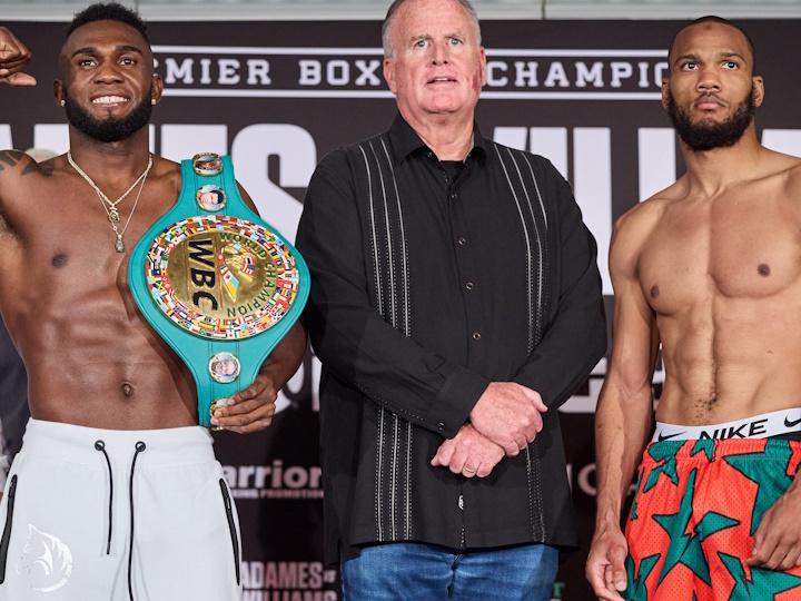 今天早些时候,现WBC中量级过渡拳王多米尼加共和国拳手卡洛斯-亚当斯(22-1,17KO)和前WBA/IBF/IBO超次中量级拳王美国人胡利安拳击-威廉姆斯(28-3-1,16KO)在美国明尼阿波利斯举行了赛前称重仪式。北京时间6月25日上午,两人将进行一场预定为12个回合的中量级比赛,卡洛斯-亚当斯第一次卫冕WBC-160磅的过渡拳王。