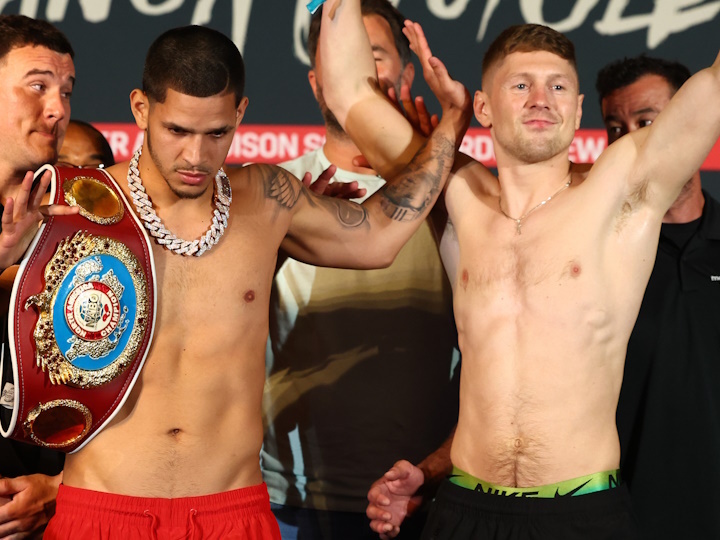 今天,美国超中量级“秒杀之王”埃德加-贝尔兰加(20-0,16KO)和爱尔兰拳手杰森-奎格(20-2,14KO)举行了赛前称重仪式。北京时间6月25日上午,两人将在美国纽约麦迪逊花园广场进行一场预定为12个回合的超中量级比赛,贝尔兰加第三次卫冕WBO北美洲际拳王,DAZN直播。