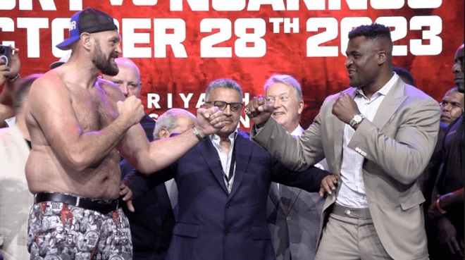 近日,现WBC重量级拳王泰森-富里(33-0-1,24KO)向媒体表示,前UFC重量级冠军弗朗西斯-纳干诺(17-3,12K,4S)10月28日和自己的跨界大战,酬金接近1000万美元,是他之前在UFC比赛最高酬金的近20倍。