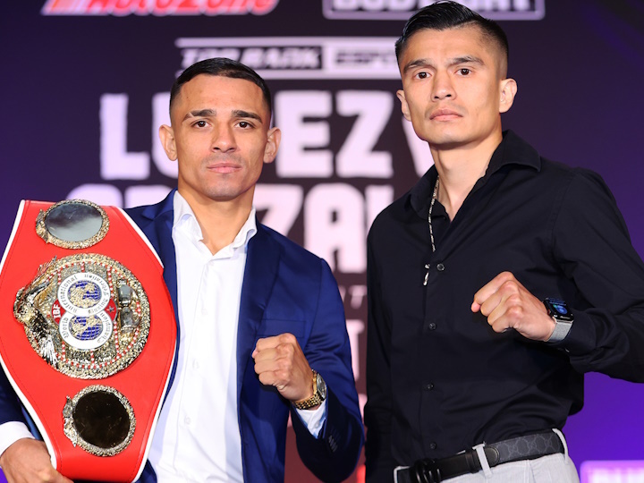 UFC今天早些时候,现IBF羽量级拳王墨西哥人路易斯-阿尔贝托-洛佩兹(28-2,16KO)和前拳王挑战者美国人乔特-冈萨雷兹(26-3,15KO)在美国科珀斯克里斯蒂召开了新闻发布会。北京时间本周日,两人将进行一场预定为12个回合的羽量级拳王争霸战,洛佩兹第二次卫冕IBF-126磅的世界拳王。洛佩兹去年12拳击月在英国利兹客场12回合以多数点数判定击败了IBF卫冕拳王沃灵顿,今年5月又5回合TKO了迈克尔-康兰,成功卫冕了一次。