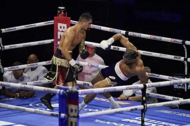 击败对手,28岁的贾-欧佩泰亚职业战绩上升为23战全胜,18场比赛KO对手,现在BOXREC-200磅综合排名第1。欧佩泰亚身高1米88,臂展1米93,左势打法,去年7月12回合点数击败了当时的次重量级第一人迈里斯-布雷迪斯(28-2,20KO)夺得了IBF次重量级拳王。