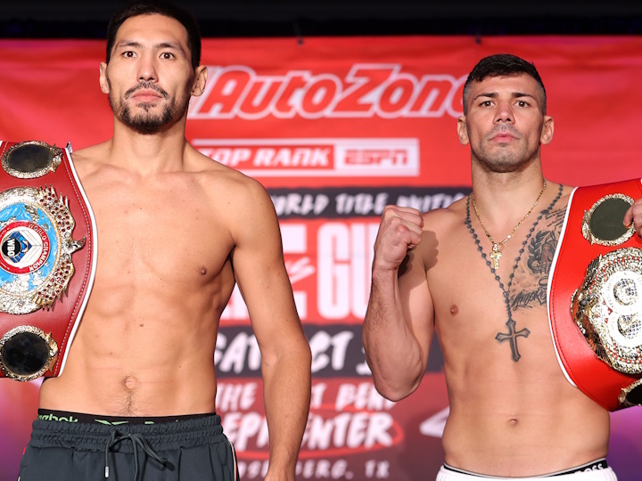 今天早些时候,现WBO中量级拳王哈萨克斯坦人加尼别克-阿利姆哈努利(14-0,9KO)和IBF中量级拳王德国人文森佐-瓜尔蒂耶里(21-0-1,7KO)在德克萨斯进行了赛前称重仪式。北京时间10月15日(本周日)中午,两人将进行一场预定为12个回合的WBO散打/IBF中量级拳坛统一战,ESPN直播。加尼别克今天称重159.3磅,对手159.5磅,一次过关。