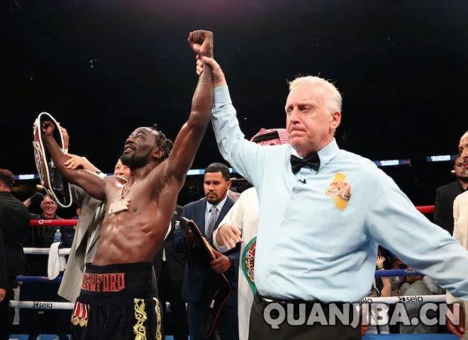 昨日午间,美国拳坛传奇人物特雷恩斯-克劳福德(42胜0负,31次KO)经过十二回合较量,成功以点数力克168磅四冠得主苏尔-阿瓦雷兹(63胜3负2平,39次KO),荣膺五个级别的世界拳王桂冠。此役后,克劳福德并未打算选择退役,反而萌生了挑战更多级别金腰带的想法。