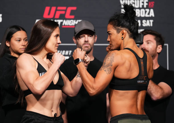 比赛对阵: 主赛: 羽量级比赛: 索迪克·尤索夫(Sodiq Yusuff)(#11) vs 埃德森·巴博萨(Edson Barboza)(#15) 女子蝇量级比赛: 珍妮弗·玛雅(Jennifer Maia)(#9) vs 维维安·阿劳约(Viviane Araujo)(#11) 雏量级比赛: 乔纳森·马丁内兹(Jonathan Martinez)(#13) vs 阿德里安·亚内兹(Adrian Yanez)(#14) 雏量级比赛: 克里斯蒂安·罗德里格兹(Christian Rodriguez) vs 卡梅隆·萨伊曼(C拳击ameron Saaiman) 中量级比赛: 米歇尔·佩雷拉(Michel Pereira) vs 安德烈·彼得罗斯基(Andre Petroski) 副赛: 羽量级比赛: 达伦·埃尔金斯(Darren Elkins) vs TJ·布朗(T.J. Brown) 女子雏量级比赛: 泰娜拉·丽斯波亚(Tainara Lisboa) vs 拉文娜·奥利维拉(Ravena Oliveira) 轻量级比赛: 特伦斯·麦金尼(Terrance McKinney) vs 布伦丹·马洛特(Brendan Marotte) 女子雏量级比赛: 伊琳娜·阿列克谢娃(Irina Alekseeva) vs 梅丽莎·迪克松(Melissa Dixon) 雏量级比赛: 克里斯·古铁雷兹(Chris Gutierrez)(#15) vs 阿拉腾黑力(Alateng Heili) 女子草量级比赛: 阿什莉·约德(Ashley Yoder) vs 艾米丽·杜科特(Emily Ducote)