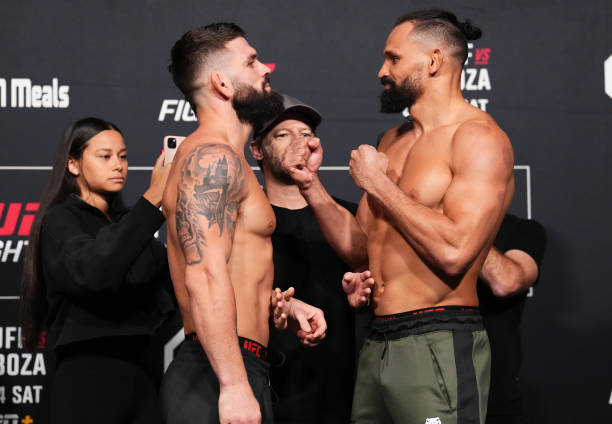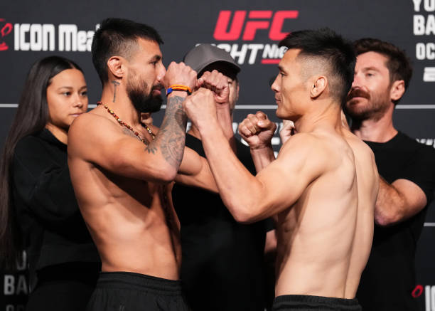今天的赛前称重仪式上,只有一位主赛选手克里斯蒂安·罗德里格兹超重,他被扣除一定比例的罚款给对手,其余选手全部顺利通过。 本次的副赛阵容里有一场备受关注的对决,中国选手阿拉腾黑力(16-8-2,5 K,3 S)(136磅)对阵目前在UFC官方排名第15位的美国选手克里斯·古铁雷兹(19-5-2,9 K,1 S)(136磅)。