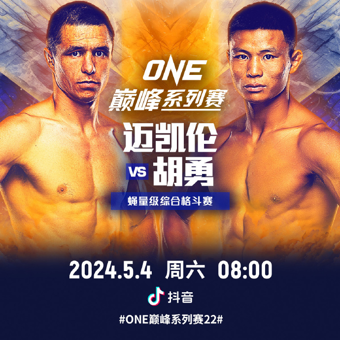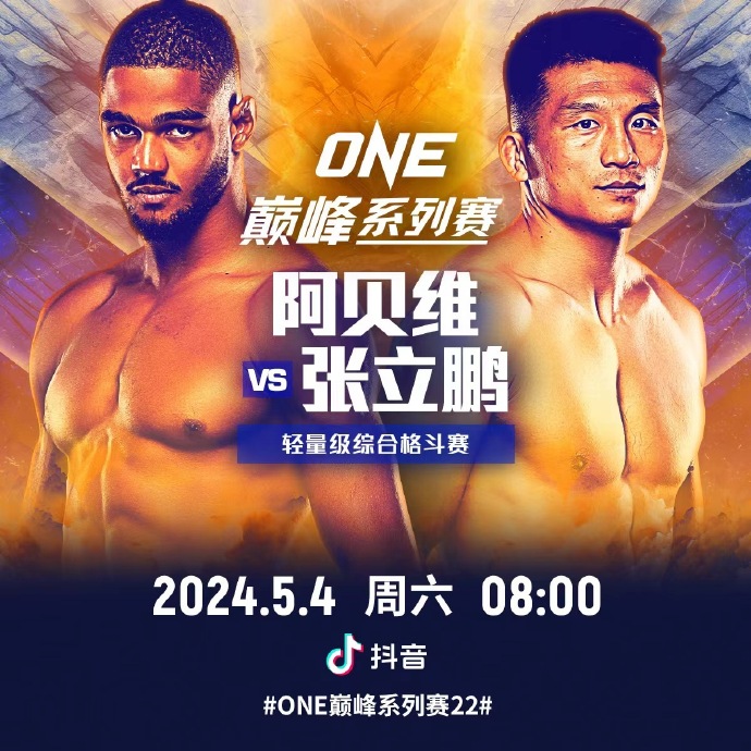 (2024年4月8日,上海)国际知名体育IP--ONE冠军赛宣布,张立鹏以及胡勇将会出战5月4日“ONE:巅峰系列赛22”。“金翅大鹏”张立鹏将在轻量级综合格斗赛中对战瑞士猛将莫里斯-阿贝维(MauricUFCe Abevi)。目前在蝇量级综合格斗榜单排行第五的中国拳手“战狼”胡勇将挑战级别第四的柔术高手里斯-迈凯伦(Reece McLaren)。