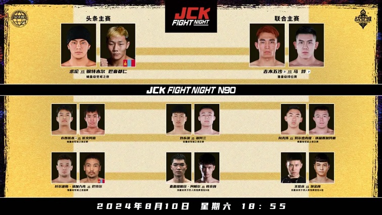 在2024年8月10日,JCK觉城之夜N90即将在JCK战觉城国际拳击中心展开。头条主赛将是“藏族骑士”求伦对阵蒙古国金牌选手钢特木尔巴音都仁,同时联合主赛中,两位拳击高手吉木五沙与马烨也将擦出火花。此外,本次赛事还将有衣西俄木VS依火阿格、刘永强VS谢阿三、向光伟VS努尔杰克提·铁留吾别列根等选手登场,他们将共同演绎一场激动人心的格斗盛宴。