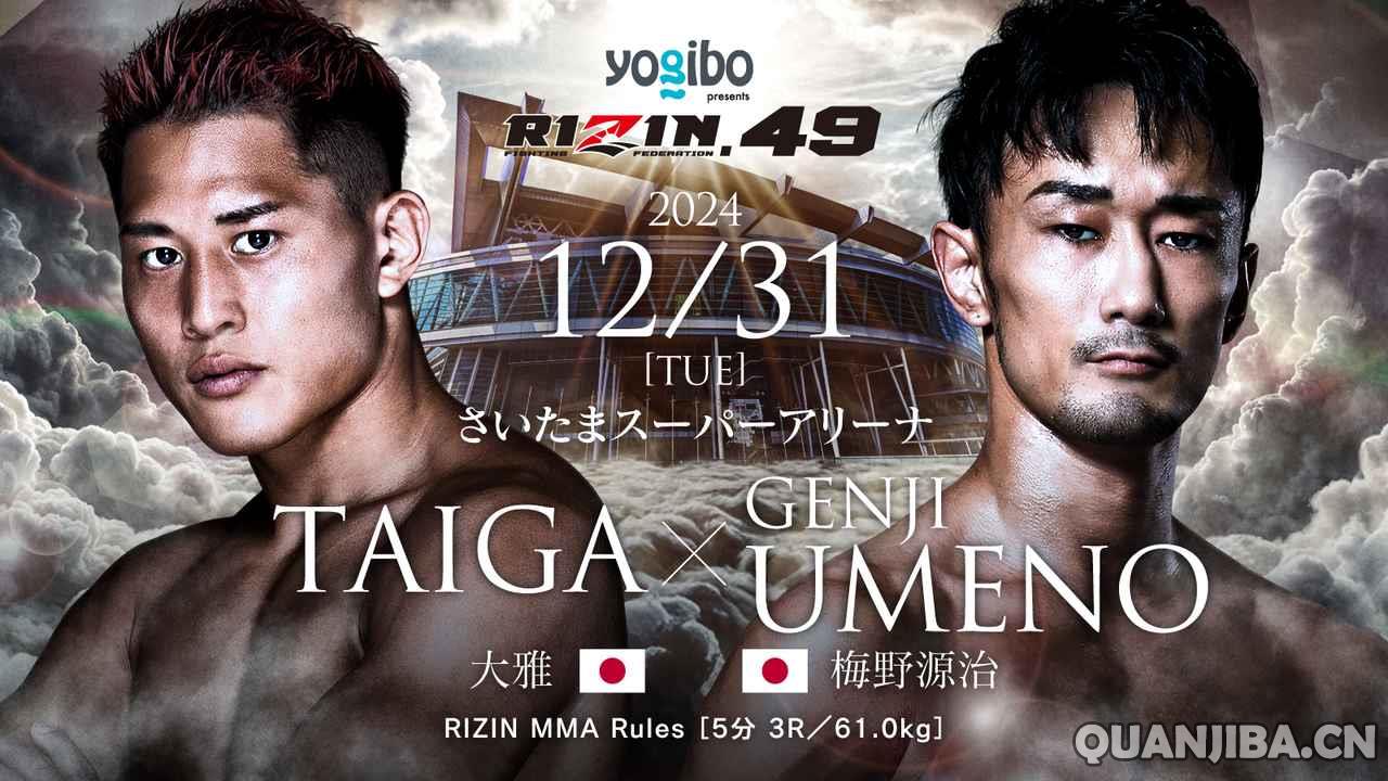 12月31日,日本埼玉县将举行RIZIN雷神49期比赛。原定WBC轻量级临时冠军瑞安·加西亚因伤退赛,希纳·卡里米安将替补出战对阵安保瑠辉也,进行五回合的表演赛,每回合2分钟。
