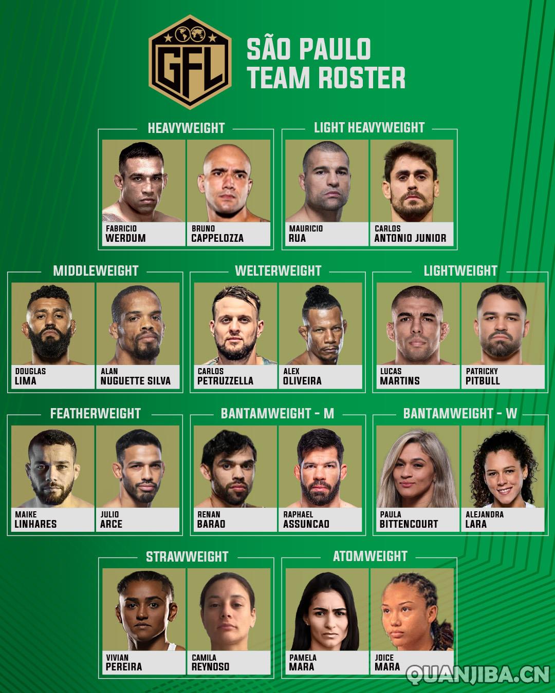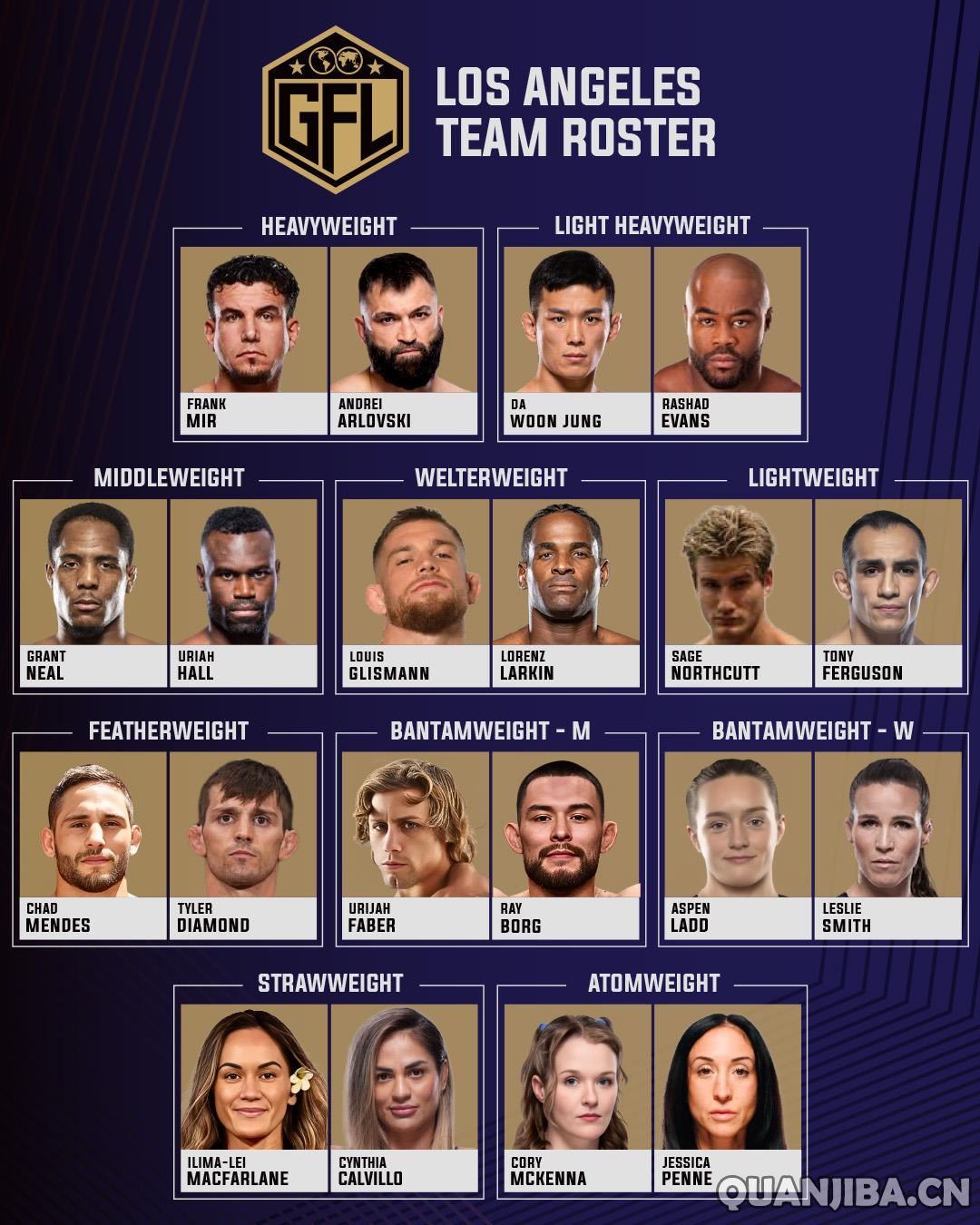 此外,有三位前UFC名将正式加入GFL,包括前UFC中量级冠军克里斯·魏德曼、前UFC女子雏量级冠军霍利·霍尔姆和前WEC羽量级冠军乌利亚·法贝尔。