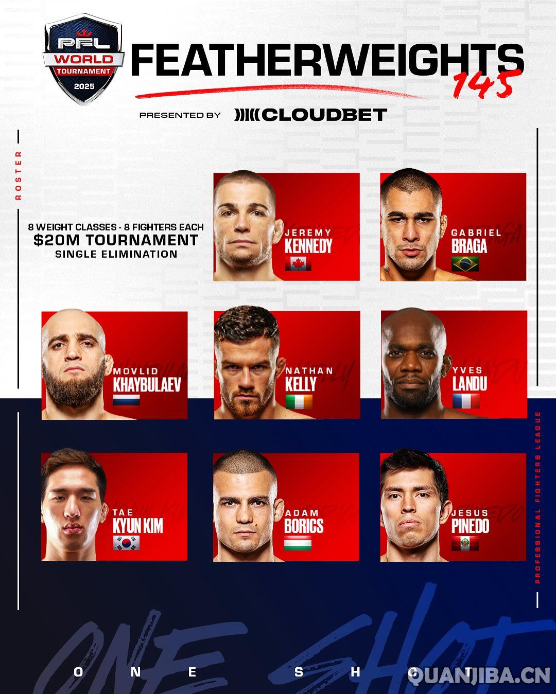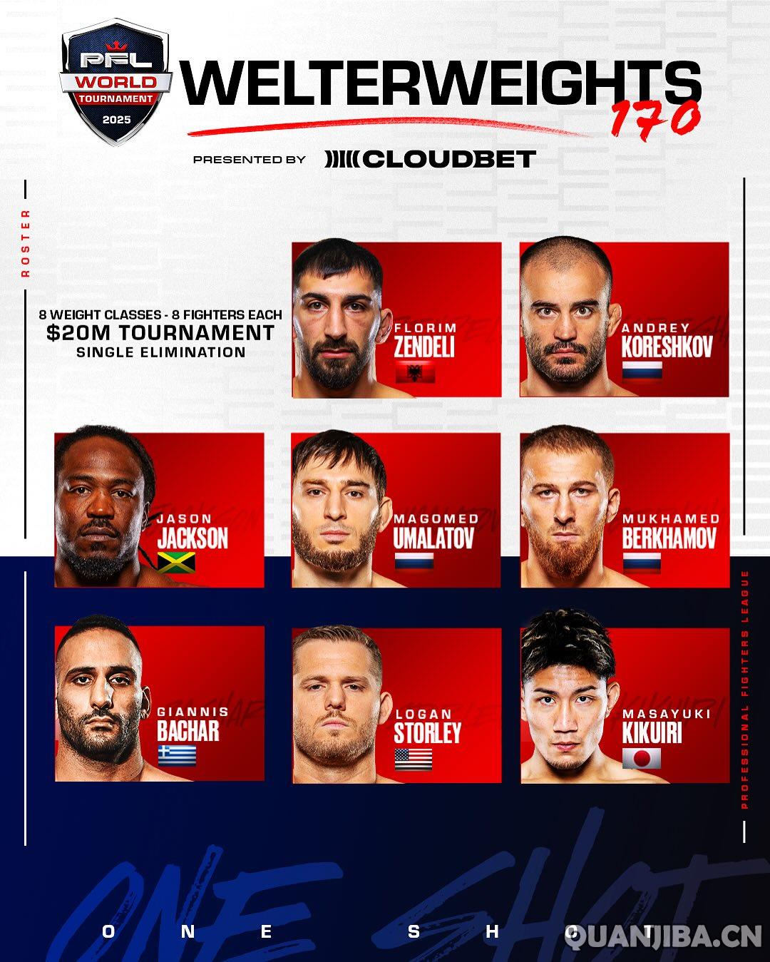 Professional Fighters League(PFL)正式宣布了2025年格斗八人锦标赛的次中量级和羽量级选手名单。锦标赛的首轮比赛将在美国奥兰多环球影城的室外场地于4月3日、4月11日、4月18日和5月1日进行。