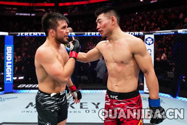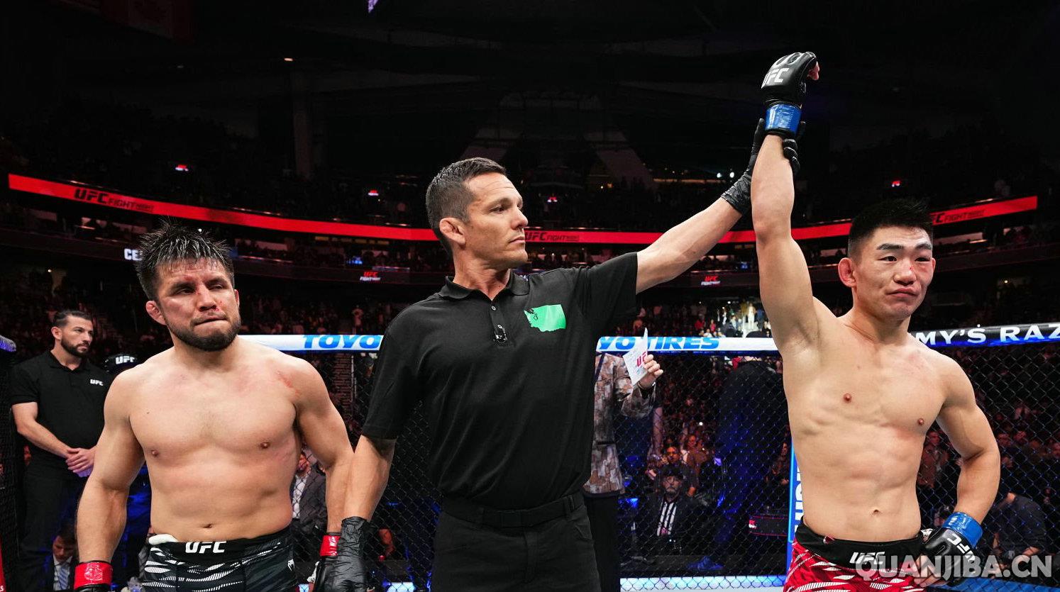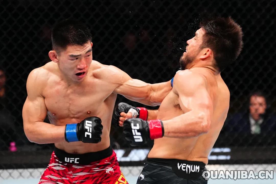 宋亚东在第三轮以技术性判定获胜,战胜前UFC冠军赛胡多(拳击)。