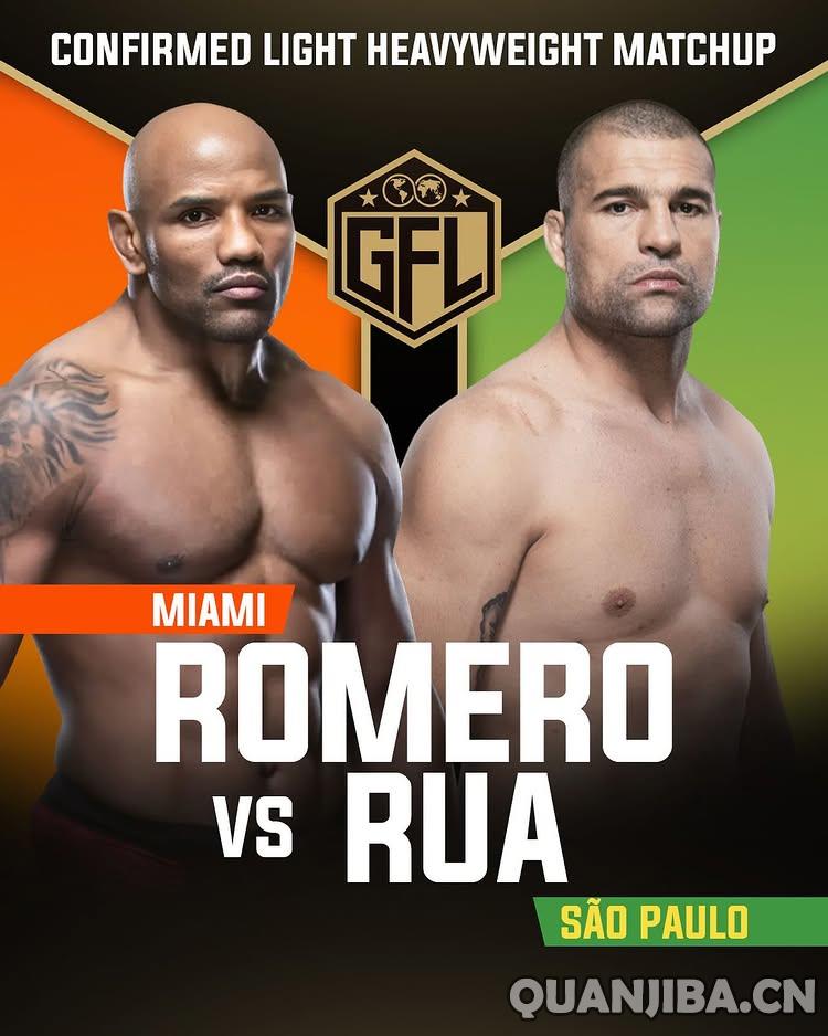 43岁的前MMA UFC轻重量级冠军“将军”马里西奥·胡阿(Mauricio Rua)(27-14-1,21 K,1 S)将对战47岁的前UFC中量级冠军挑战者尤尔·罗梅罗(Yoel Romero)(16-7,13 K,0 S)