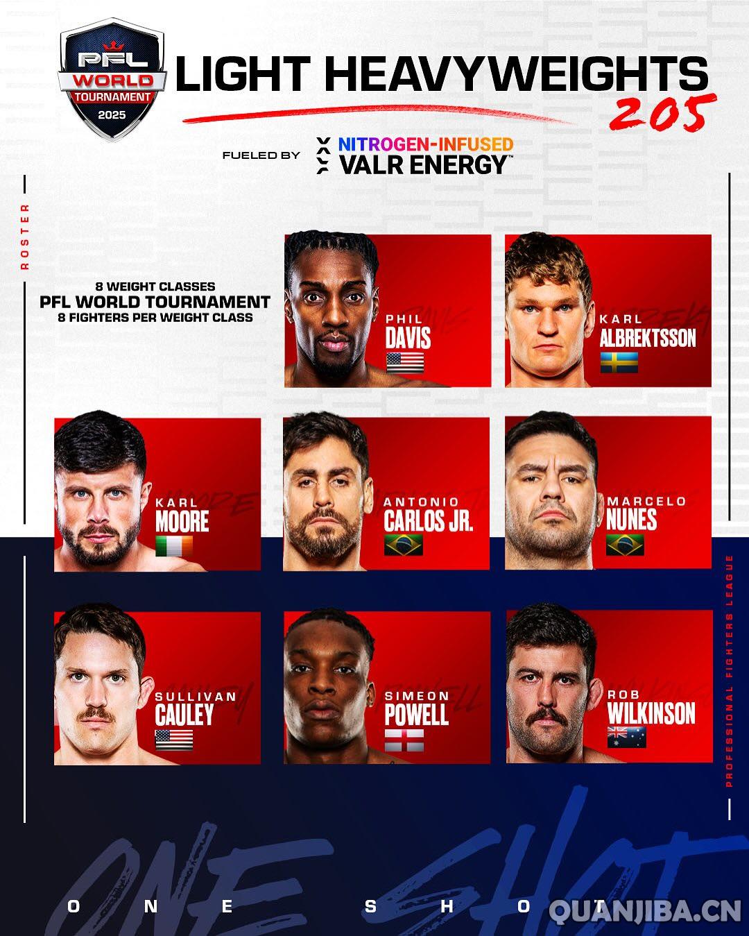 Professional Fighters League (PFL) officially announced the list of heavyweights and light heavyweights for the 2025 eight-man championship tournament, with fighters from all eight weight classes MMA being revealed. The first round of the tournament will take place on April 3, April 11, April 18, and May 1 at Universal Studios Orlando in the US.