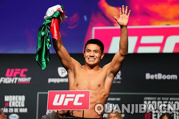比赛对阵安排: 主赛: 蝇量级比赛: 布兰登·莫雷诺(Brandon Moreno)(#2) vs 史蒂夫·埃尔切格(Steve Erceg)(#8) 轻量级比赛: 曼努埃尔·托雷斯(Manuel Torres) vs 德鲁·杜伯(Drew Dober) 中量级比赛: 凯尔文·盖斯特鲁姆(Kelvin Gastelum) vs 乔·派弗(Joe Pyfer) 雏量级比赛: 小拉乌·罗萨斯(Raul Rosas Jr.) vs 文斯·莫拉莱斯(Vince Morales) 雏量级比赛: 大卫·马丁内兹(David Martinez) vs 赛蒙·奥利维拉(Saimon Oliveira) 蝇量级比赛: 罗纳尔多·罗德里格兹(Ronaldo Rodriguez) vs 凯文·博尔哈斯(Kevin Borjas) 副赛: 蝇量级比赛: 埃德加·查雷兹(Edgar Chairez) vs CJ·维加拉(C.J. Vergara) 中量级比赛: 何塞·梅迪纳(Jose Medina) vs 阿特巴·阿贝加·戈蒂埃(Ateba Abe泰拳ga Gautier) 羽量级比赛: 克里斯蒂安·罗德里格兹(Christian Rodriguez) vs 梅尔奎扎伊尔·科斯塔(Melquizael Costa) 女子草量级比赛: 鲁皮·戈迪内兹(Loopy Godinez)(#11) vs 朱莉娅·波拉斯特里(Julia Polastri) 轻量级比赛: 拉法-加西亚(Rafa Garcia) vs 温克·皮切尔(Vinc Pichel) 羽量级比赛: 贾马尔·埃默斯(Jamall Emmers) vs 加布里埃尔·米兰达(Gabriel Miranda) 轻量级比赛: 马奎尔·梅德罗斯(MarQuel Mederos) vs 奥斯汀·哈伯德(Austin Hubbard)