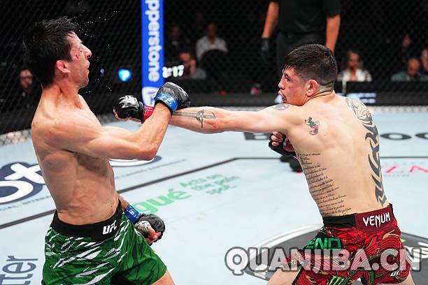 本次比赛的主赛引人注目,聚焦于蝇量级的对决。比赛中,曾获得UFC蝇量级冠军的布兰登·莫雷诺(23-8-2,5K,11S)与排名第八的澳大利亚新星史蒂夫·埃尔切格(12-4,2K,6S)展开激烈的较量。两位选手在站立打击中进行对攻,前三回合势均力敌,而随着比赛推进,莫雷诺逐渐占据上风,尤其在最后一回合,他成功施展抱摔,锁定胜局。最终,莫雷诺以一致判定(49-46、49-46、49-46)赢得了这场五回合的大战。