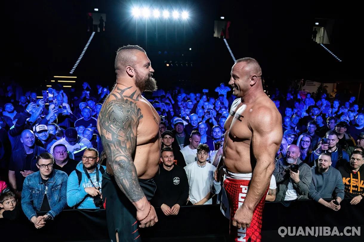 当地时间4月26日,在波兰格利维茨市举行的KSW 105期比赛上,五届世界大力士冠军48岁的波兰“大力神”马瑞斯·普贾诺夫斯基(Mariusz Pudzianowski)迎战2017年世界大力士冠军37岁的英国选手艾迪·霍尔(Eddie Hall)。