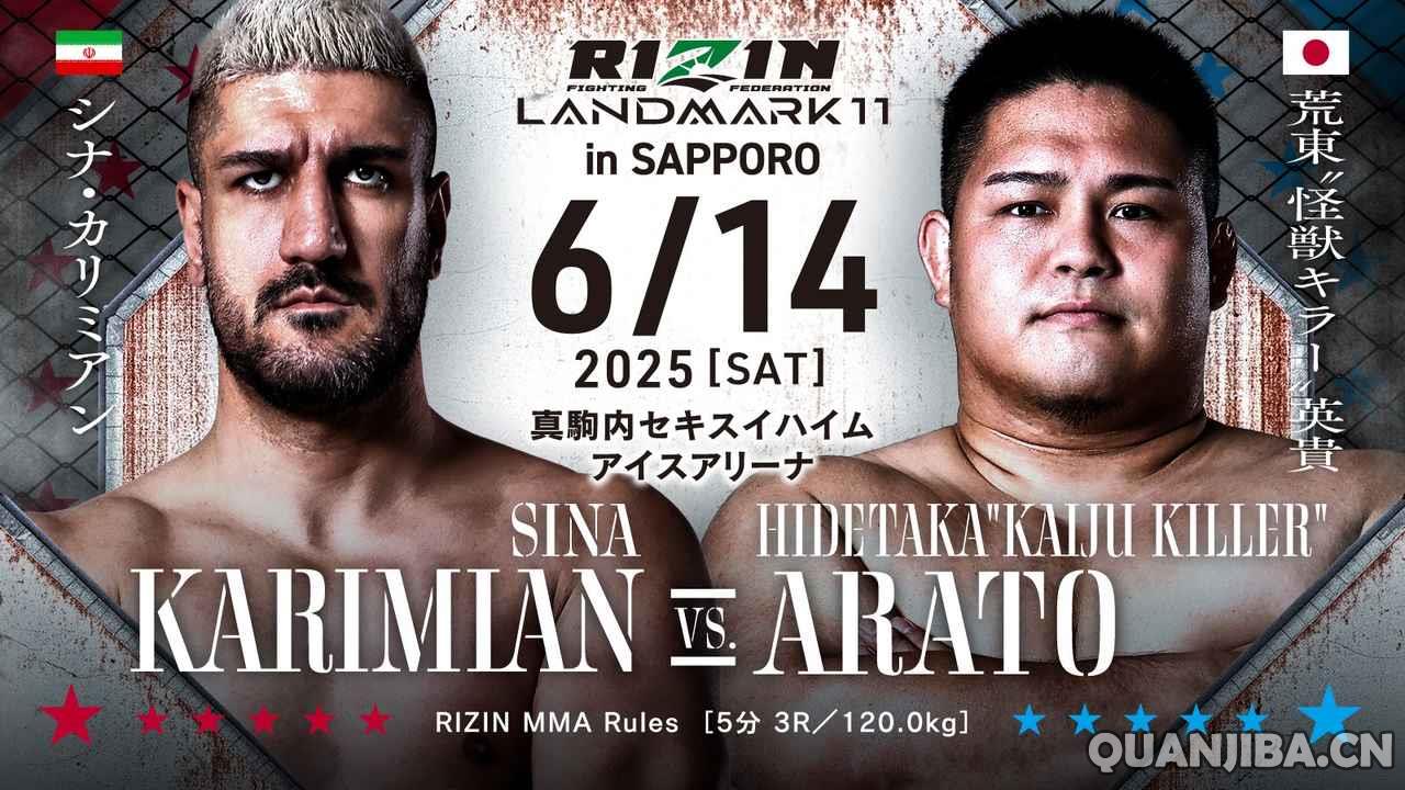 定于6月14日在日本札幌进行的RIZIN雷神笼斗赛事“地标”(LANDMARK)第11期比赛,又加入了两场备受瞩目的对战。首先,中国青海藏族战士扎西巴丁将客场对战本土选手远藤来生(Raiki Endo),紧接着,前K-1 MMA-Welterweight冠军希纳·卡里米安(Sina Karimian)将在其MMA职业生涯的首场比赛中迎战荒东英贵(Hidetaka Arato)。