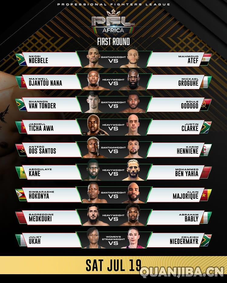 PFL今天宣布了其在非洲的首场赛事,将于7月19日在南非开普敦隆重举行,所有比赛的对阵情况也已正式公布。