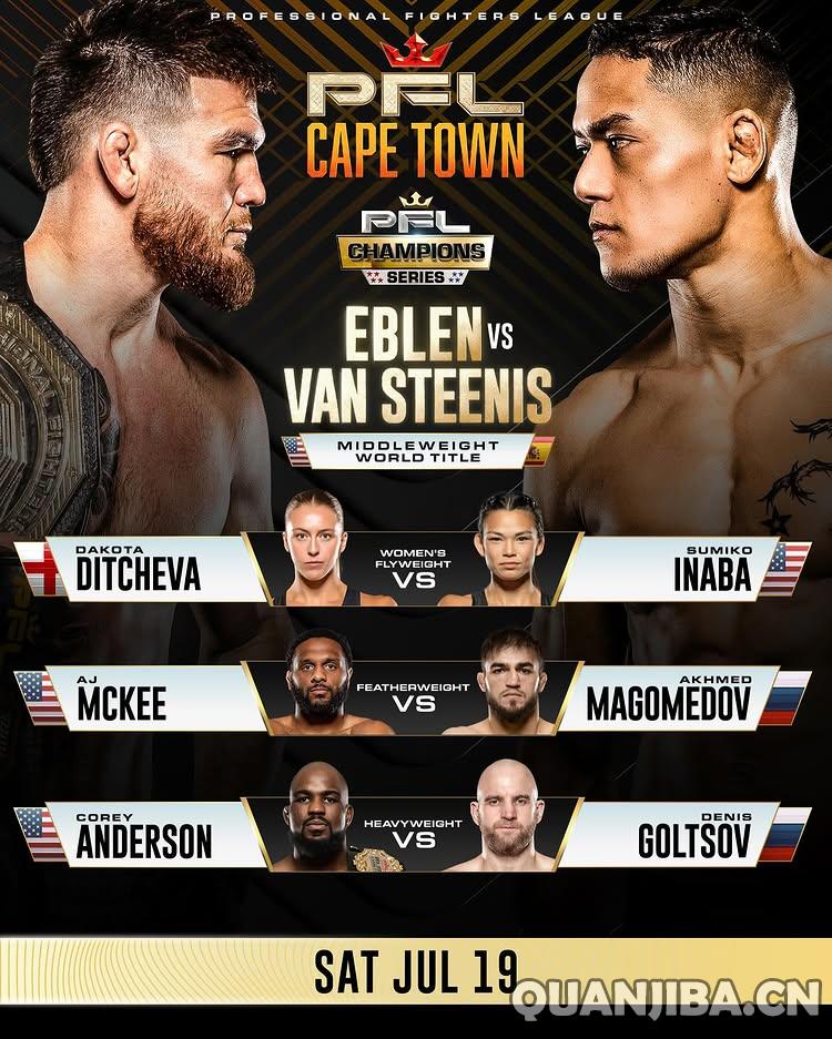"7月PFL非洲首场比赛将启幕,埃伯伦、迪切娃、麦基与安德森携手出征拳击盛宴"