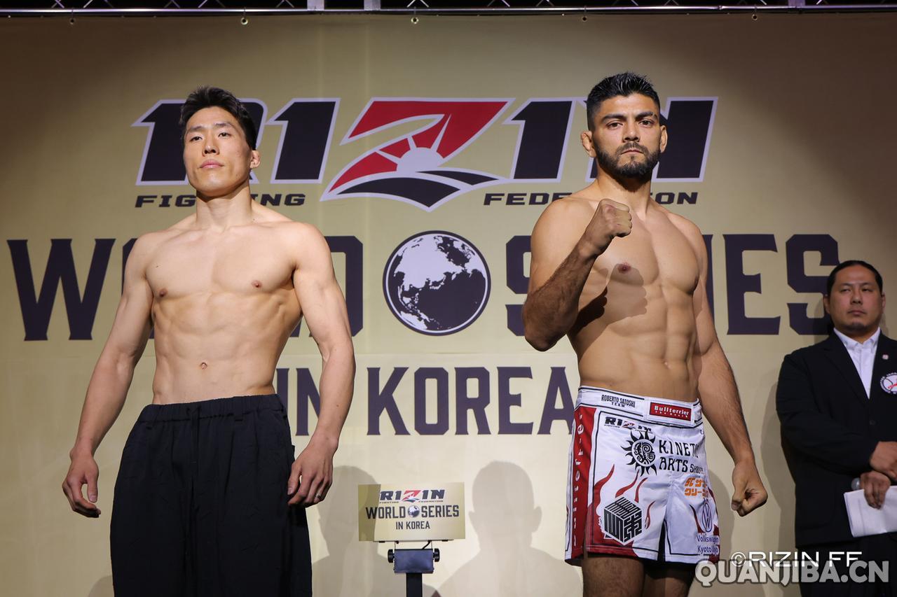 当天的主打赛事将是本土选手奇源彬(Won Bin Ki)(战绩18胜9负,其中12场通过击倒获胜,3场通过降服获胜),与现任RIZIN轻量级冠军罗伯托·德·索萨(Roberto de Souza)(战绩18胜3负,包括6场KO胜和11场降服胜)进行一场无头衔的超级对决。