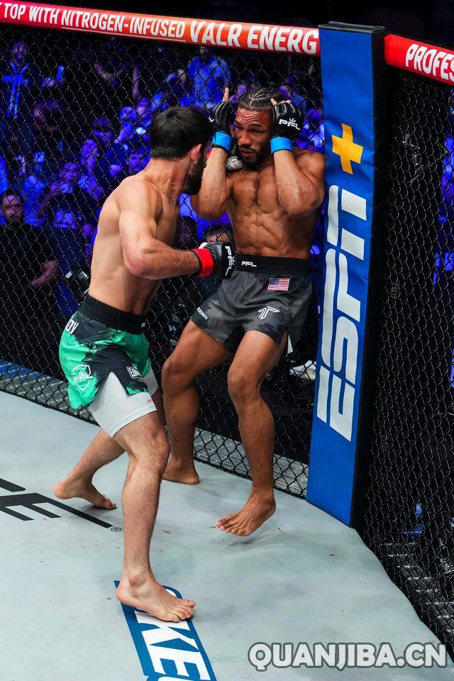 在轻量级半决赛中,2024年PFL轻量级冠军加奇·拉巴达诺夫(Gadzhi Rabadanov,战绩26胜4负1平,含10场KO和5场降伏)在首回合经过2分37秒,以重拳TKO击败前UFC冠军挑战者凯文·李(Kevin Lee,战绩20胜9负,含3场KO和9场降伏)。同时,阿尔菲·戴维斯(Alfie Davis,拳击战绩19胜5负1平,含6场KO和3场降伏)通过一致判定赢得了前Bellator轻量级冠军布伦特·普里姆斯(Brent Primus,战绩16胜5负,含2场KO和9场降伏,1场无效)。
