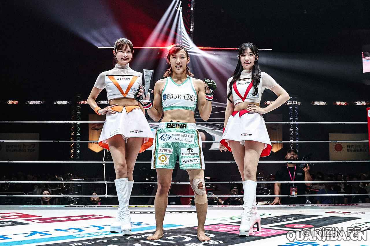 同样引人关注的是现任RIZIN女子原子量级冠军的不败女王伊泽星花(Seika Izawa)(战绩16胜0负,1次KO,9次降服)与韩国选手申有真(Yu-jin Shin)(战绩3胜1负,0次KO,2次降服,1次无胜负)之间的对阵。由于申有真在赛前体重超标,这场比赛变成了无头衔的超级战。最终,伊泽星花在首回合以2分24秒的时间,通过手臂三角绞技精彩降服对手,继续保持不败纪录。