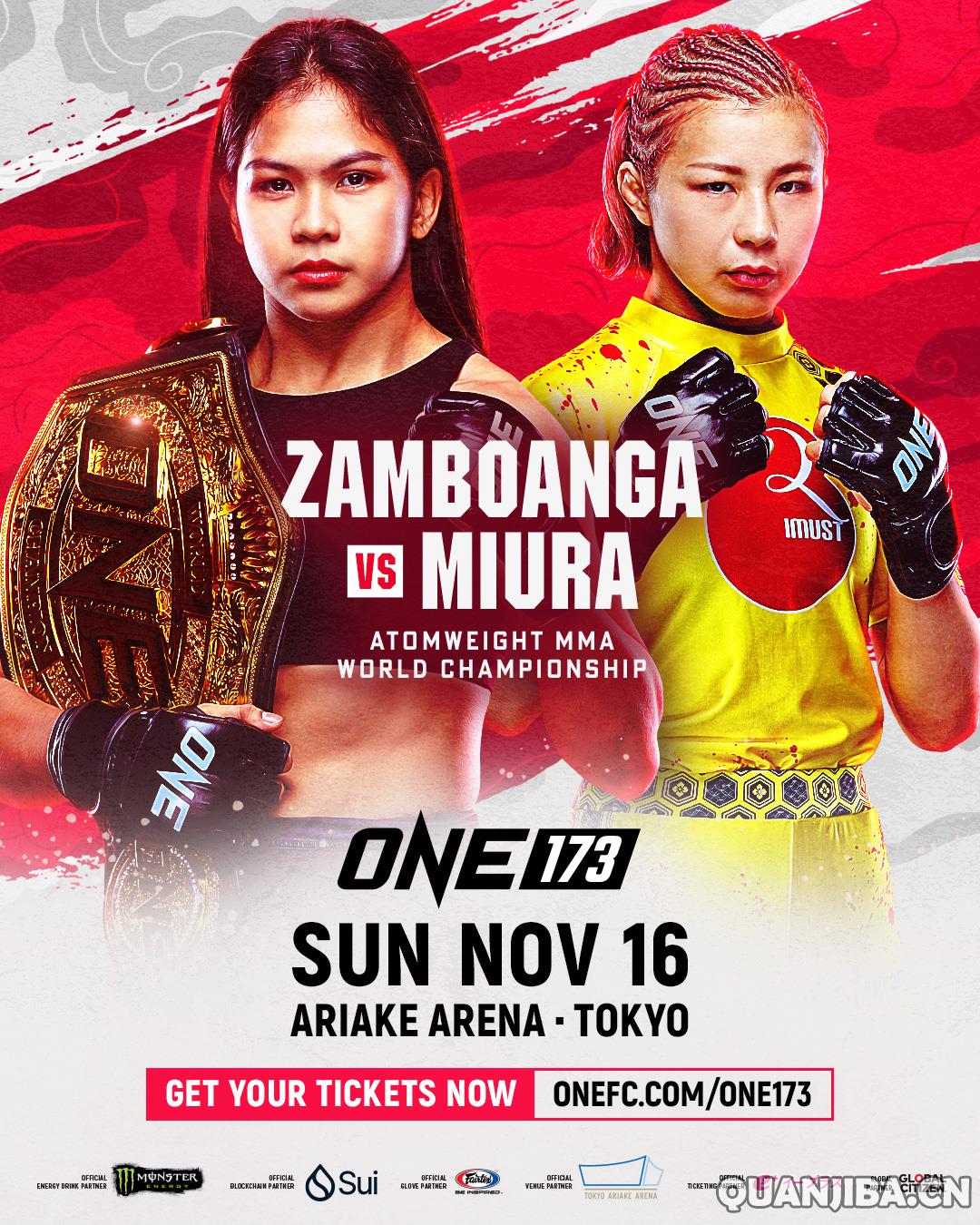 此外,赛事中还有两场冠军争夺战:ONE冠军赛蝇量级MMA冠军若松佑弥(Yuya Wakamatsu)(19胜6负,13场KO)将迎战挑战者、ONE冠军赛草量级MMA冠军约书亚·帕西奥(Joshua Pacio)(23胜4负,9场KO,8次无结果)。在女子原子量级的比赛中,现任冠军丹妮丝·三宝颜(Denice Zamboanga)(12胜2负,3场KO)将面对挑战者三浦彩佳(Ayaka Miura)(16胜5负,0场KO,11次无结果,1次无结果)。