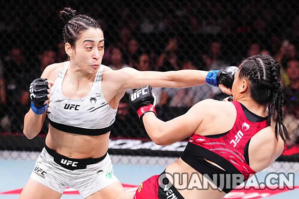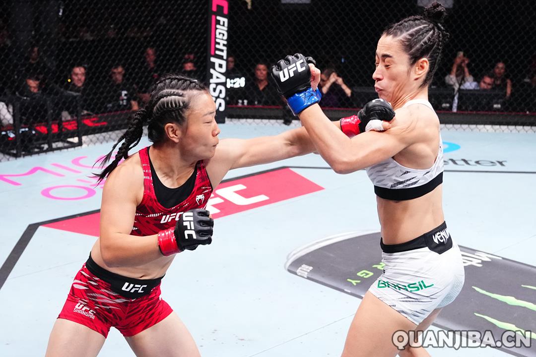 此次比赛的重磅对决是女子对抗赛,"最强老中医"石铭(17-6,2 K,6 S)迎战来自巴西的布鲁娜·布拉西尔(11-5-1,3 K,2 S),这是她的UFC首秀。在这场比赛中,二者的实力差距显而易见。布拉西尔凭借她修长的身形和扎实的技术,始终在远距离控制比赛,试图不让石铭靠近。而石铭则数次尝试近身攻击和抱摔,尽管努力却未能取得太多成效。最终,经过三回合的激战,布拉西尔以(30-27、30-27、30-27)的全场一致判定胜出。