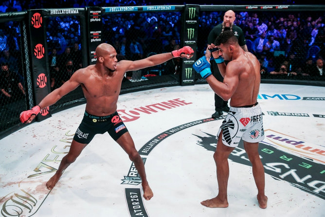 当地时间10月1日,Bellator 267期比赛在英国首都伦敦举行。当天的头条主赛是前Bellator次中量级冠军道格拉斯·利马(Douglas Lima)对阵本土名将“毒液”迈克尔·佩奇(Michael Page)的二番战,双方打满三回合最终佩奇以微弱点数分歧判定险胜。