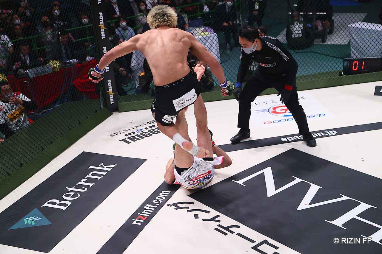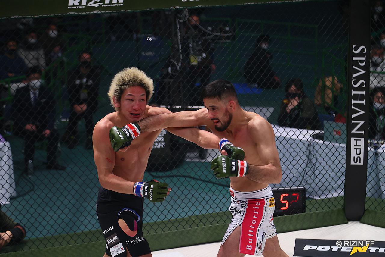 2月23日,RIZIN雷神笼斗赛Trigger第二期比赛在日本袋井市举行。当天共有十二场比赛,其中五场踢拳(自由搏击)规则和八场MMA综合格斗规则。本次的头条主赛是巴西选手克莱伯·科伊克·艾伯斯特(Kleber Koike Erbst)对阵本土名将佐佐木佑太(Ulka Sasaki)UFC,这场比赛一波三折上演了一出绝对反杀。