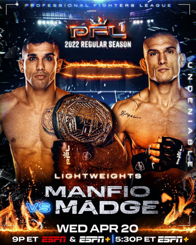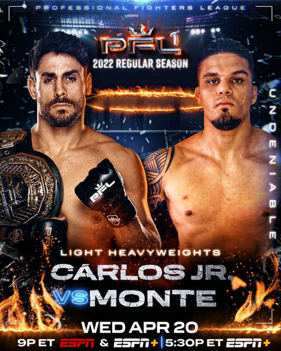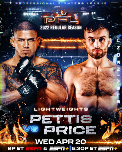 本次的头条主赛是2021年PFL轻量级总冠军拉奥什·曼菲奥(Raush Manfio)(15-3,7 K,0 S)对阵唐·马奇(Don Madge)(10-3-1,5 K,4 S)。联合主赛是前UFC轻量级冠军安东尼·佩蒂斯(Anthony Pettis)(24-12,11 K,7 S)对阵爱尔兰选手迈尔斯·普莱斯(Myles Price)(11-7,3 K,2 S)。还有前UFC巴西名将2021年PFL轻重量级总冠军安东尼奥·卡洛斯·朱尼奥(Antonio Carlos Junior)(13-5,0 K,10 S,2 N泰拳)对阵同胞德兰·蒙特(Delan Monte)(8-1,5 K,3 S)。