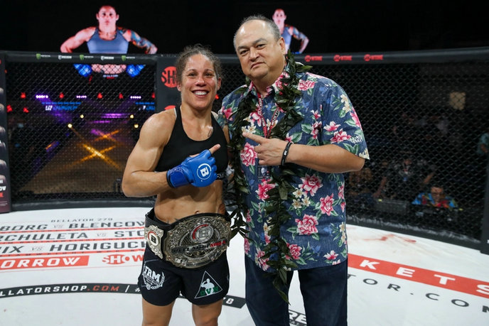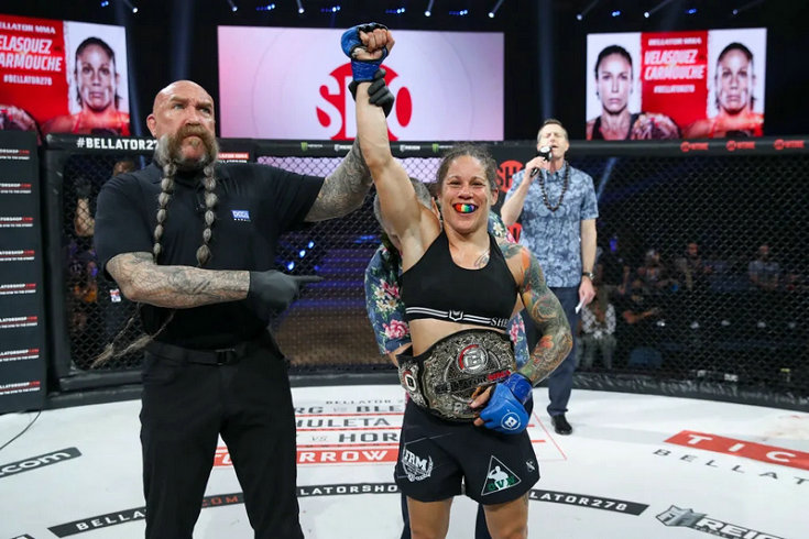 北京时间4月23日,Bellator 278期比赛在美国夏威夷檀香山举行。格斗今天的头条主赛是Bellator女子蝇量级冠军争霸赛,挑战者丽兹·卡穆什(Liz Carmouche)在第四局TKO现任冠军朱丽安娜·维拉奎兹(Juliana Velasquez),成为新任Bellator女子蝇量级冠军。
