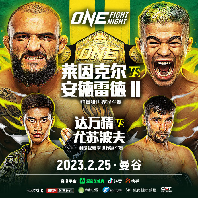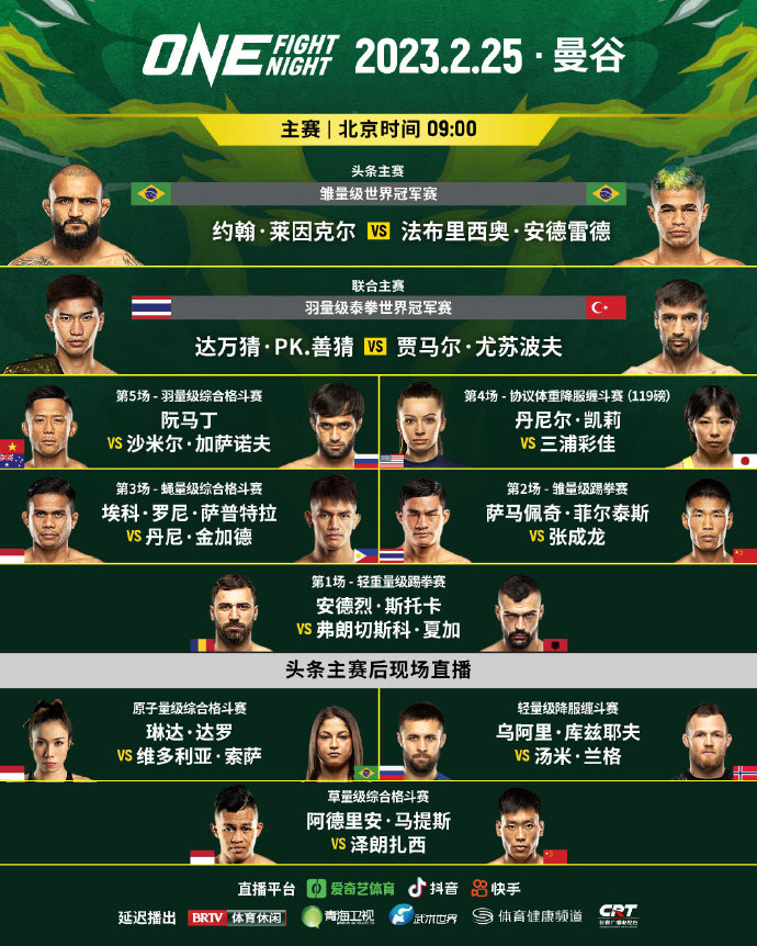 将于2月25日在泰国曼谷举行的ONE冠军赛格斗之夜7期比赛,官方公布了全部比赛对阵表名单。