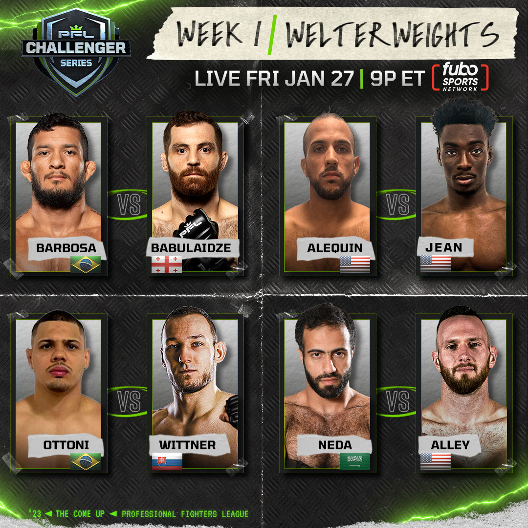 来自官方的消息,2023年PFL挑战者系列赛将于1月27日至3月17日开始,在佛罗里达州奥兰多的佛罗里达环球影城(Universal Studios Florida)外景地举行,官方今天公布了3月3日举行的羽量级比赛阵容。
