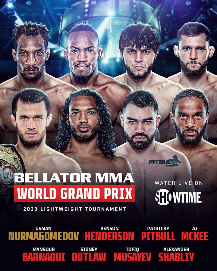 Bellatot轻量级八人大奖赛的对阵名单分别是:乌斯曼 · 努马戈梅多夫 (Usman Nurmagomedov)(16-0,8 K,5 S)对阵前UFC轻量级冠军本森·亨德森(Benson Henderson)(30-11,5 K,9 S);前RIZIN冠军托菲克·穆萨耶夫(Tofiq Musayev)(20-4,16 K,2 S)对阵亚历山大·沙布利(Alexander Shabliy)(22-3,11 K,7 S);前BAMMA、M-1和Road FC轻量级冠军曼苏尔·巴纳奥伊(Mansour Barnaoui)(20-4,6 K,13 S)对阵前ROC轻量级和次中量级冠军西德尼·奥特劳(Sidney Outlaw)(16-5,1 K,8 S);前Bellator羽量级冠军AJ·麦基(A.J. McKee)(20-1,6 K,7 S)对阵前Bellator轻量级冠军帕特里奇·弗莱雷(Patricky Freire)(24-11,16 K,1 S)。