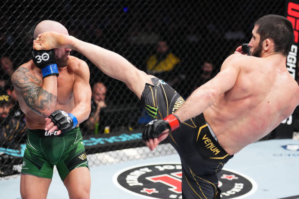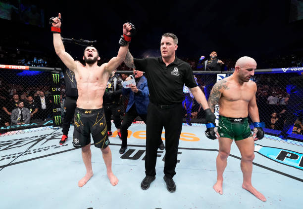 伊斯拉姆·马哈切夫(Islam Makhachev) 胜 亚历山大·沃卡诺夫斯基(Alexander Volkanovski) 一致判定(48–47, 48–47, 49–46) 5回合