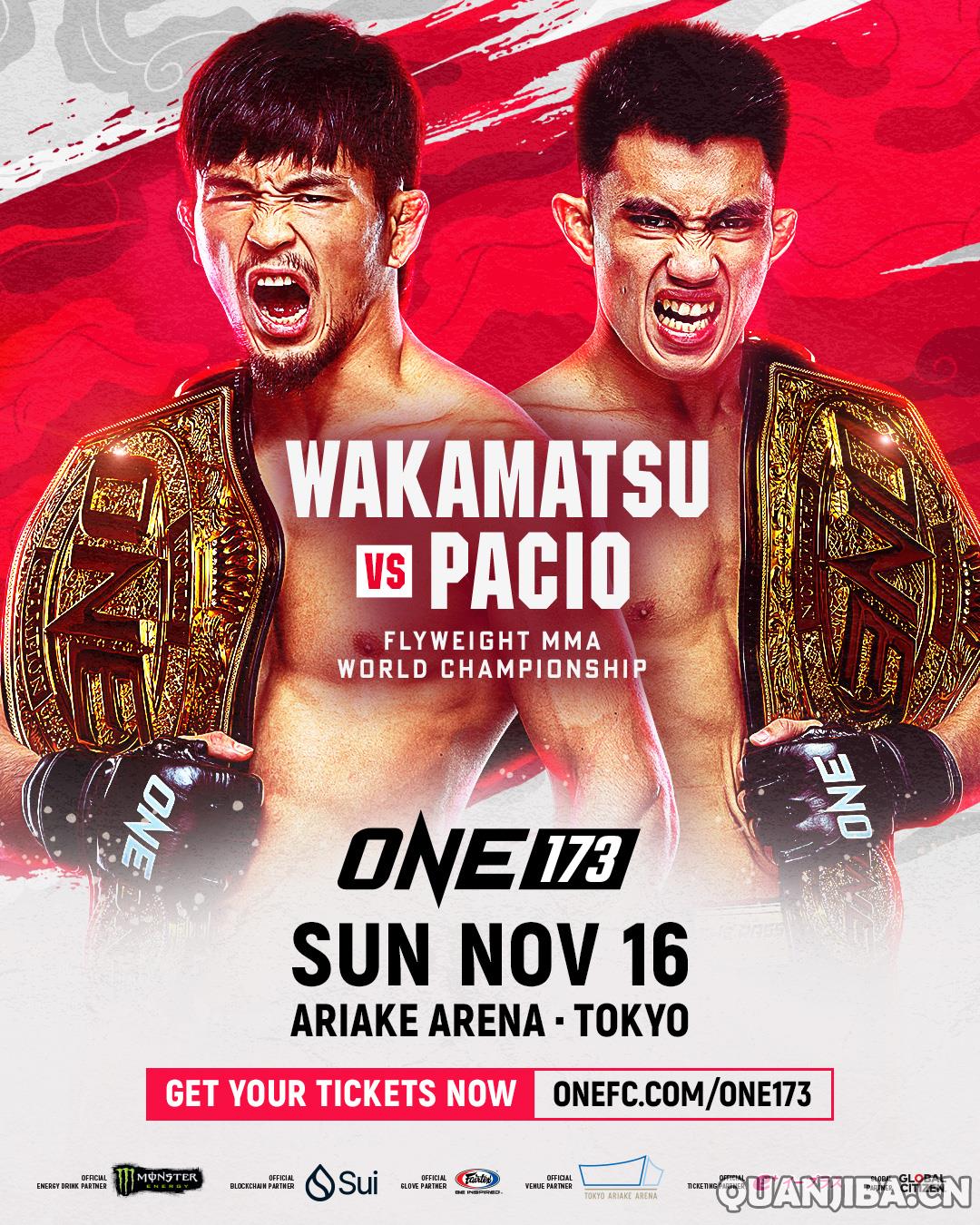 ONE蝇量级MMA冠军争霸赛,现任冠军若松佑弥(战绩19胜6负,13场KO,无场次失利)挑战ONE草量级MMA冠军约书亚·帕西奥(战绩23胜4负,9场KO,8场失利)。