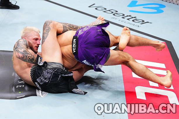 这场赛事的主赛是一场轻量级重头戏,头号挑战者阿尔曼·萨鲁基安(23胜3负,9次KO,6次降服)与排名第六的丹·胡克(24胜13负,11次KO,7次降服)交锋。从比赛一开始,萨鲁基安凭借强大的摔跤技术迅速占据上风,第一局成功进行了抱摔,而胡克试图反击却被他化解。第二局中,虽然胡克也尝试了断头台,但萨鲁基安巧妙地逃脱,运用压制战术恢复控制局面,最终在第二回合完成了手臂三角绞,成功降服对手,收获五连胜,毫无疑问,他将是下一个争夺冠军的热门人选。