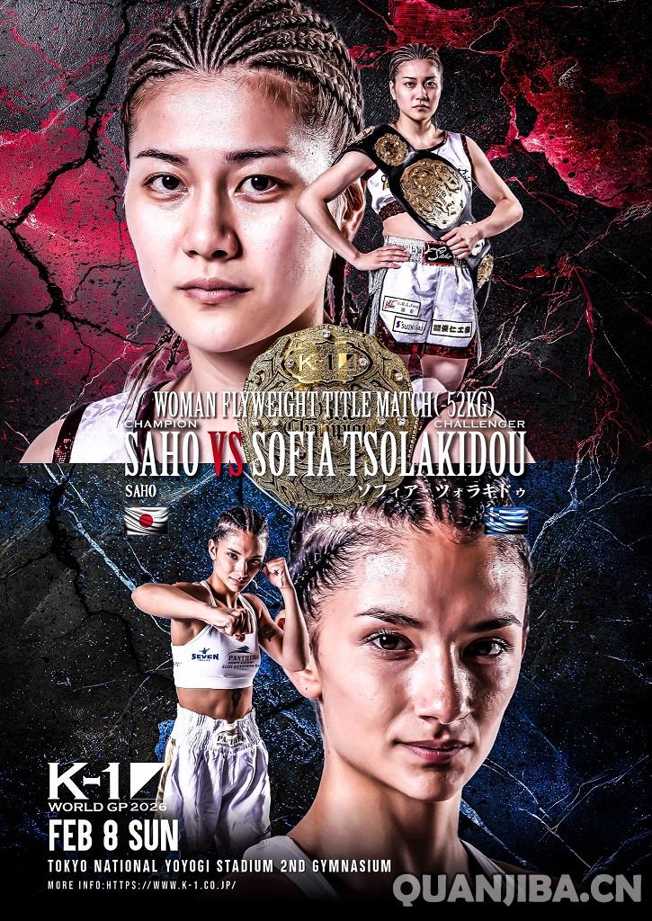 K-1女子蝇量级(-52kg)冠军战也极具看点,“SAHO”吉野纱帆对阵索菲亚·佐拉基杜,争夺该级别的最高荣誉。