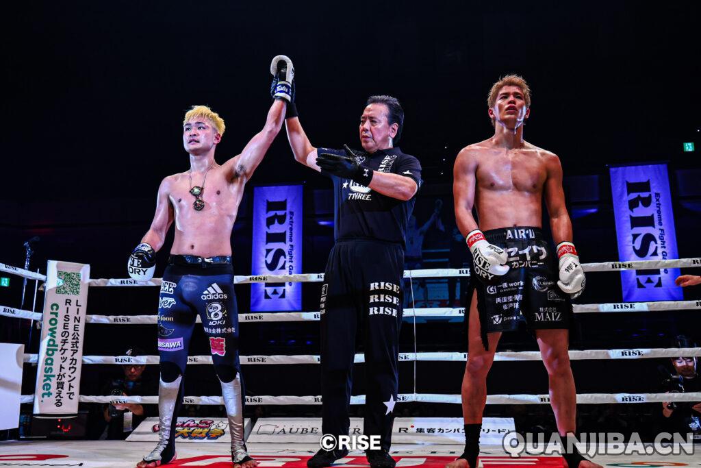 本次重磅主赛是RISE-61.5kg级别的终极对决,中国新锐袁MMA鹏杰(41胜4负)迎战本土名将——曾获RISE轻量级(-63kg)冠军头衔的中村宽(Kan Nakamura)(20胜6负,14次KO,1次无效)。这已是两人的第二次交锋。第一次是在2024年9月,两人鏖战至加时第四回合,最终由中村宽以点数险胜。本场比赛依旧战况激烈,袁鹏杰前三回合泰拳技术发挥稳定,远射后撤,打击精准,但在加时赛突遭中村宽高扫读秒,遗憾失利,痛失金腰带资格。