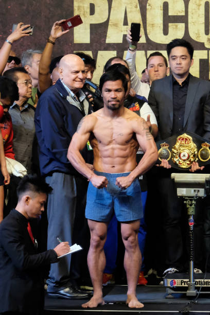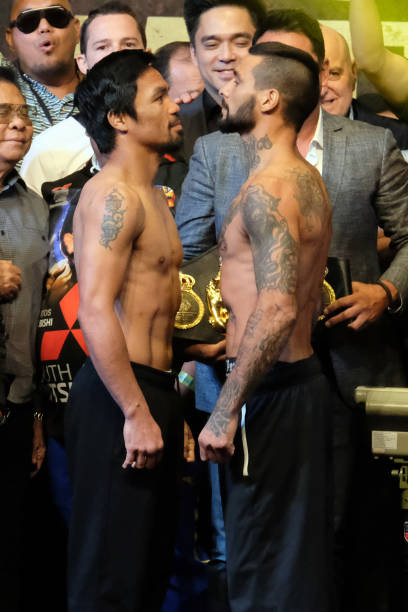 北京时间7月14日,曼尼·帕奎奥(Manny Pacquiao)与现任WBA次中量级冠军阿根廷拳王卢卡斯·马特西(Lucas Matthysse)在马来西亚吉隆坡进行了赛前称重仪式。明天,双方将进行一场十二回合的WBA次中量级世界拳王争霸赛。