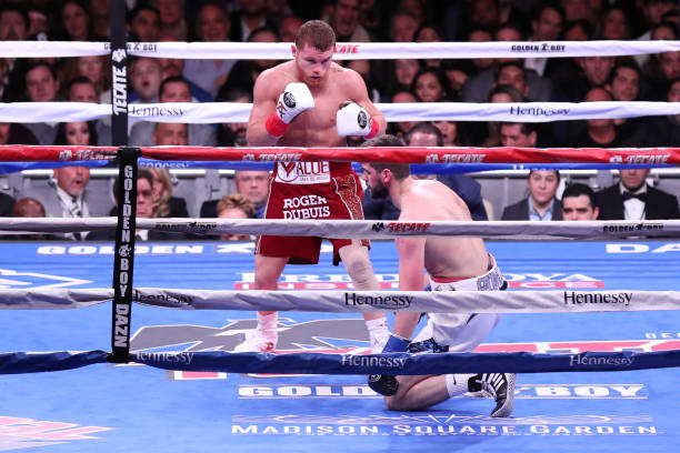 第一回合索尔·阿瓦雷兹(51-1-2,35 KO)就步步紧MMA逼强势压制,第一散打回合过半洛奇·菲尔丁(27-2,15 KO)就被阿瓦雷兹击倒一次。第二回合菲尔丁试图反击但是没有任何威胁性,阿瓦雷兹继续组合拳压制,多次勾拳命中头部与肋部后第二次击倒菲尔丁。第三回合基本已毫无新,阿瓦雷兹继续步步紧逼勾拳出击,最终菲尔丁被阿瓦雷兹摆拳第三次击倒,裁判读秒后阿瓦雷兹又是一记重拳,这一次第四次击倒裁判终止了比赛,阿瓦雷兹以KO的方式夺得WBA超中量级冠军金腰带。