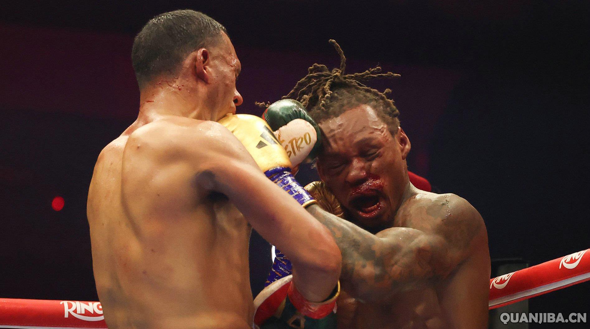 贝纳维德兹(31-0, 25 KO)与亚德(27-4, 24 KO)的比赛可以说是毫无悬念,完全是贝纳维德兹单方面碾压全局,贝纳维德兹依旧是高频输出,亚德慢慢被蚕食殆尽,最终在第七回合两次击倒后裁判终止比赛。