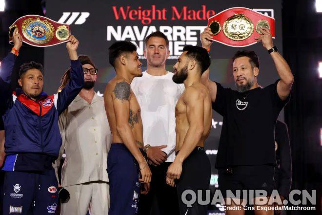 在今天的赛前活动中,现任WBO次轻量级冠军、三量级世界冠军得主伊曼尼尔-纳瓦雷特(39胜2负1平,32次KO)与同为墨西哥籍的IBF次轻量级王者爱德华多-努涅斯(29胜1负,27次KO)顺利完成了体重称重。北京时间3月1日中午,这场备受关注的次轻量级拳王统一战将在美国格兰岱尔沙漠钻石MMA酒店展开,并由DAZN进行现场直播。