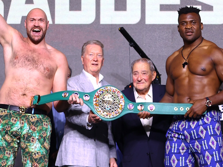 今天,现WBC重量级拳王泰森-富里(33-0-1,24KO)和前UFC重量级冠军“铁血战士”弗朗西斯-纳干诺(17-3,12,4S)在沙特阿拉伯利雅得召开了赛前最后一次发布会。北京时间10月29日早晨,两人将进行一场预定为10泰拳个回合的重量级比赛,格斗泰森-富拳击里不带WBC金腰带。