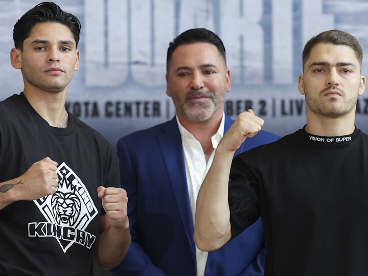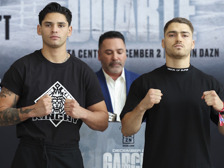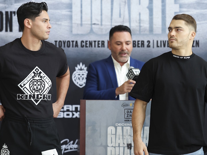 今天,前WBC轻量级过渡拳王美国“闪电侠”瑞恩-加西亚(23-1,1散打9KO)格斗和墨西哥重炮手奥斯卡-杜阿尔特(26-1-1,21KO)召开了赛前首次新闻发布UFC会。北京时间12月3日,两人将在休斯顿进行一场预定为12个回合的超轻量级比赛,这也是瑞恩-加西亚自今年4月被格沃塔-戴维斯(29-0,27KO)7回合KO之后的首战。