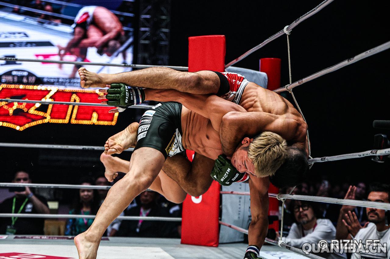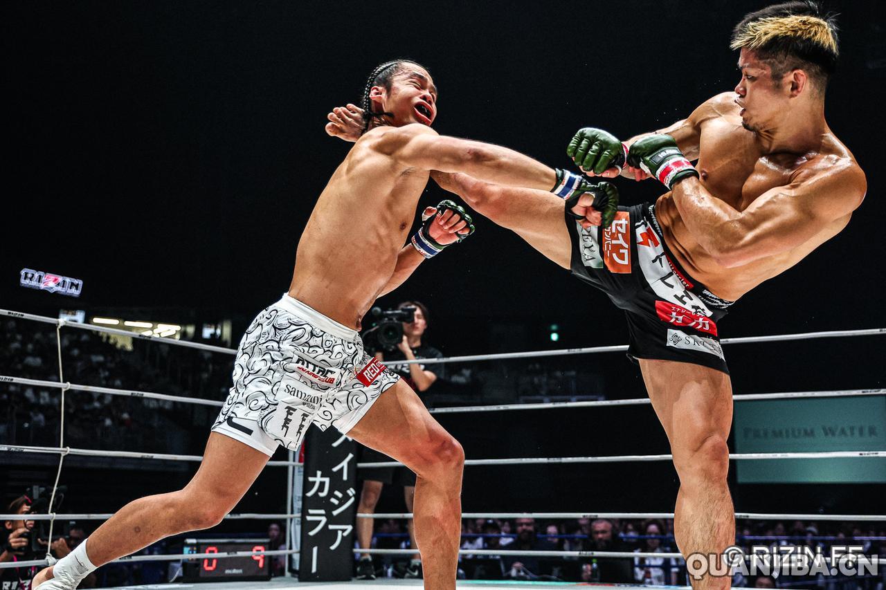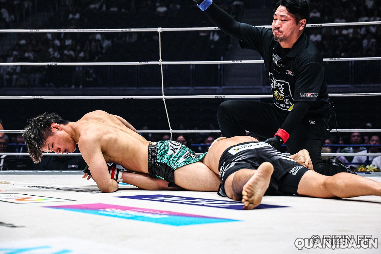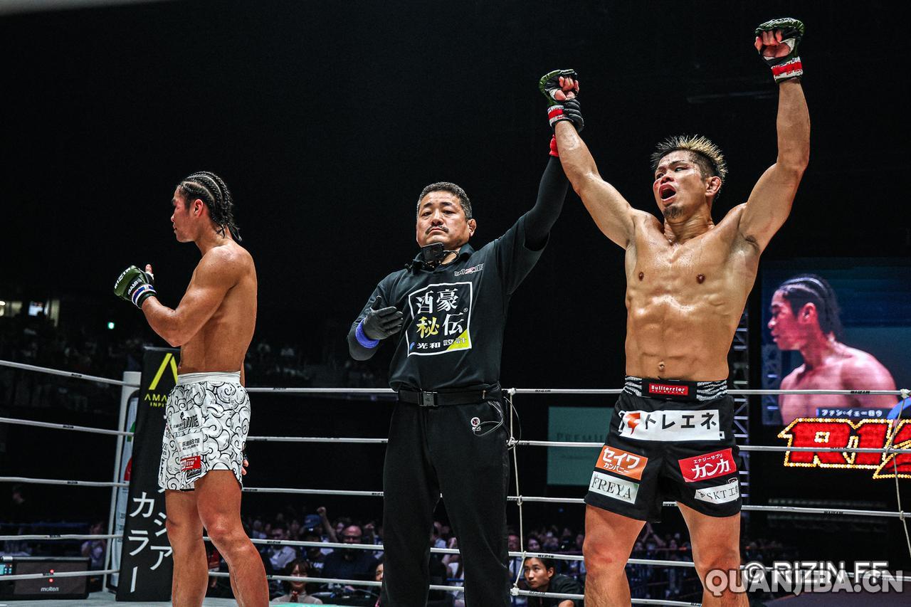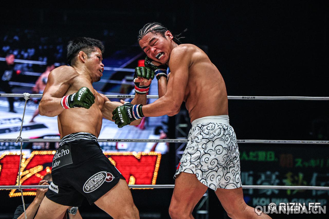 在9月28日,日本名古屋迎来了备受瞩目的RIZIN雷神51期赛事。比赛中最引人关注的是一场羽量级对决,年轻的中国选手武林笼中,年仅25岁,挑战现任羽量级冠军“醒狮”黄粤乐(战绩10胜2负,3次KO,3次降伏),这场比赛打得相当激烈,而黄粤乐的对手,40岁的本土老将铃木博昭(战绩6胜6负,4次KO,0次降伏),经过三回合的激战,最终铃木以微弱的优势通过裁判分歧判定取得胜利。