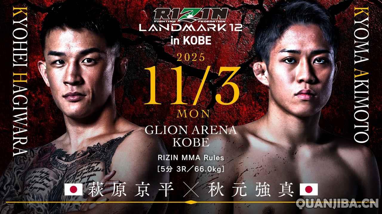 当天的主赛事是一场备受期待的羽量级对决,萩原京平(Kyohei Hagiwara)(9胜10负,7KO,0降服)将迎战19岁的小将秋元强真(Kyoma Akimoto)(9胜1负,4KO,2降服)。此外,联合主赛为RIZIN女子超原子量级冠军争夺战,现任不败女王伊泽星花(Seika Izawa)(16胜0负,1UFC,9降服)将面对挑战者大岛沙绪里(Saori Oshima)(15胜6负,2KO,9降服)。