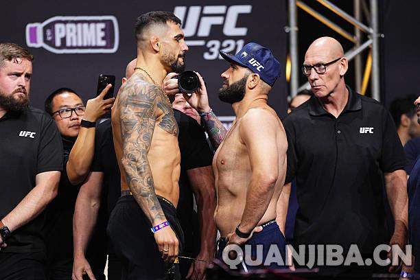 UFC 321期赛事定于10月26日北京时间在阿布扎比拉开帷幕,今天进行的称重仪式上,所有主赛选手均顺利通过。咪咕视频将在今晚凌晨2点进行直播,期待您的关注!